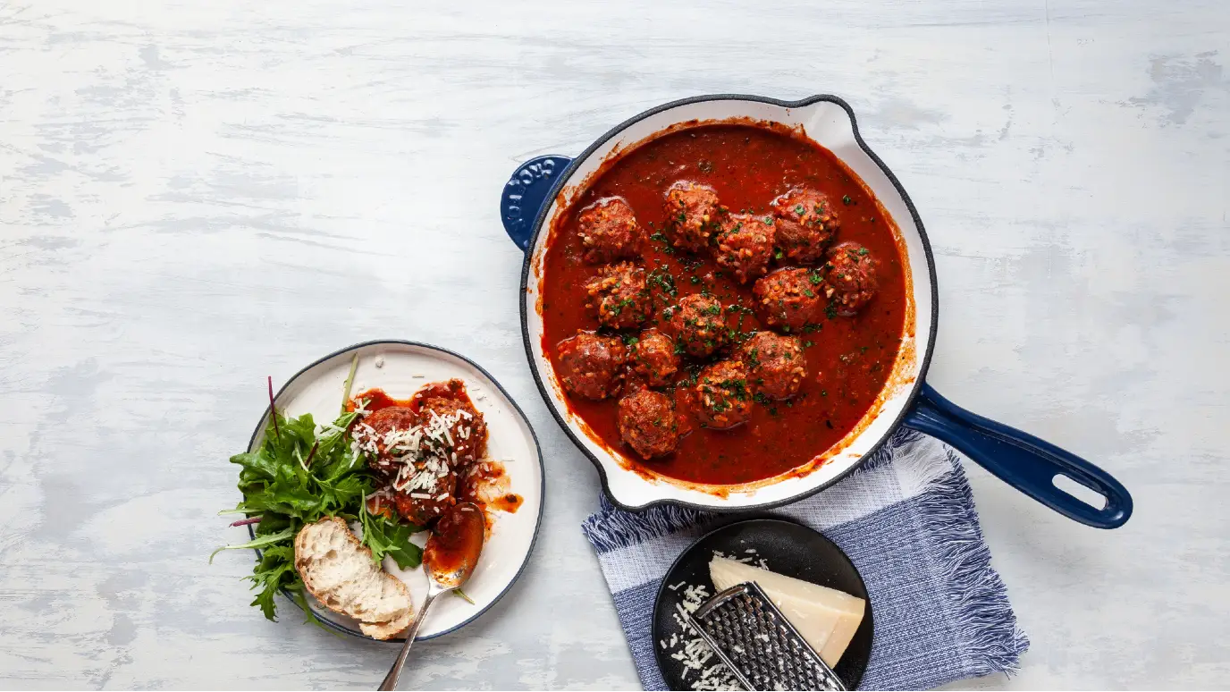 - 3 Gently submerge balls in simmering sauce. Cover and simmer for 40-45 min or until rice is tender and poking out of the meatballs. Serve with crusty bread and a green salad.