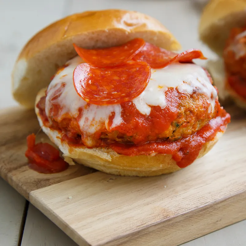 - 3 Place cooked burger on bottom bun, top with pepperoni slices and top half of bun. Serve immediately.