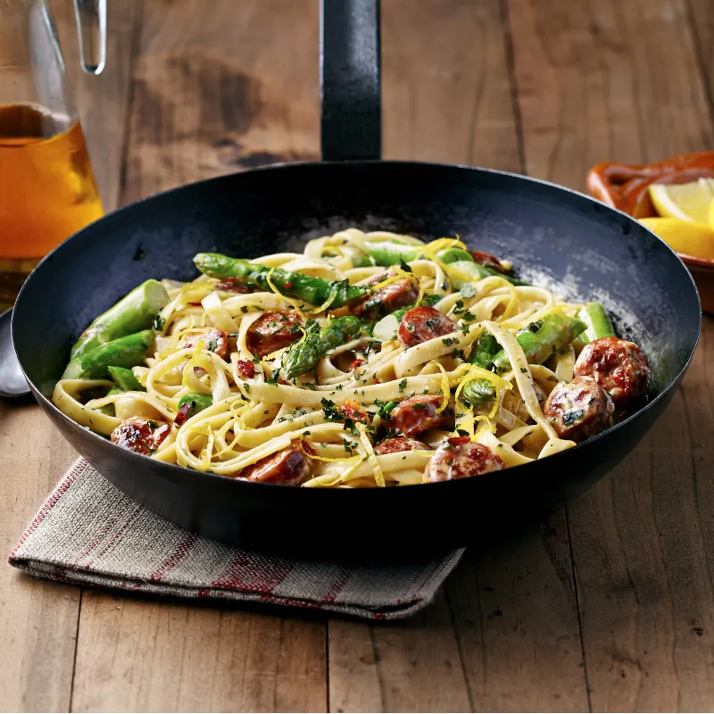 - 5 Season with freshly ground pepper and divide over fettuccini. Serve with a squeeze of lemon, garnish with Lightly Dried Parsley