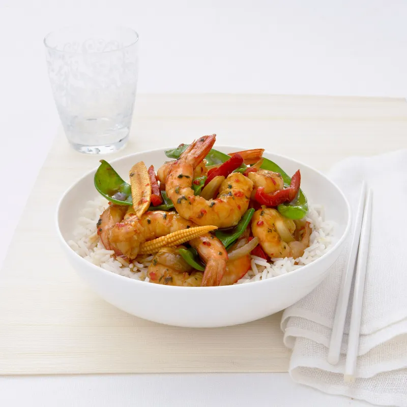 - 4 Return prawns to the wok, add Lightly Dried Coriander and stir-fry until prawns are heated through. Serve over steaming hot rice sprinkled with peanuts and thinly sliced spring onions if desired.