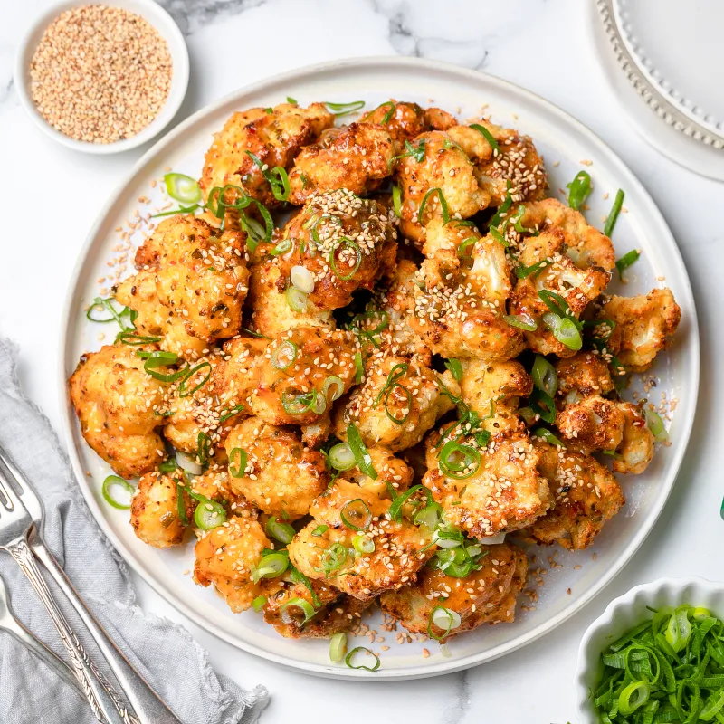 - 7 Remove cauliflower florets from oven and pour the sauce over the florets. Gently combine to evenly coat.
