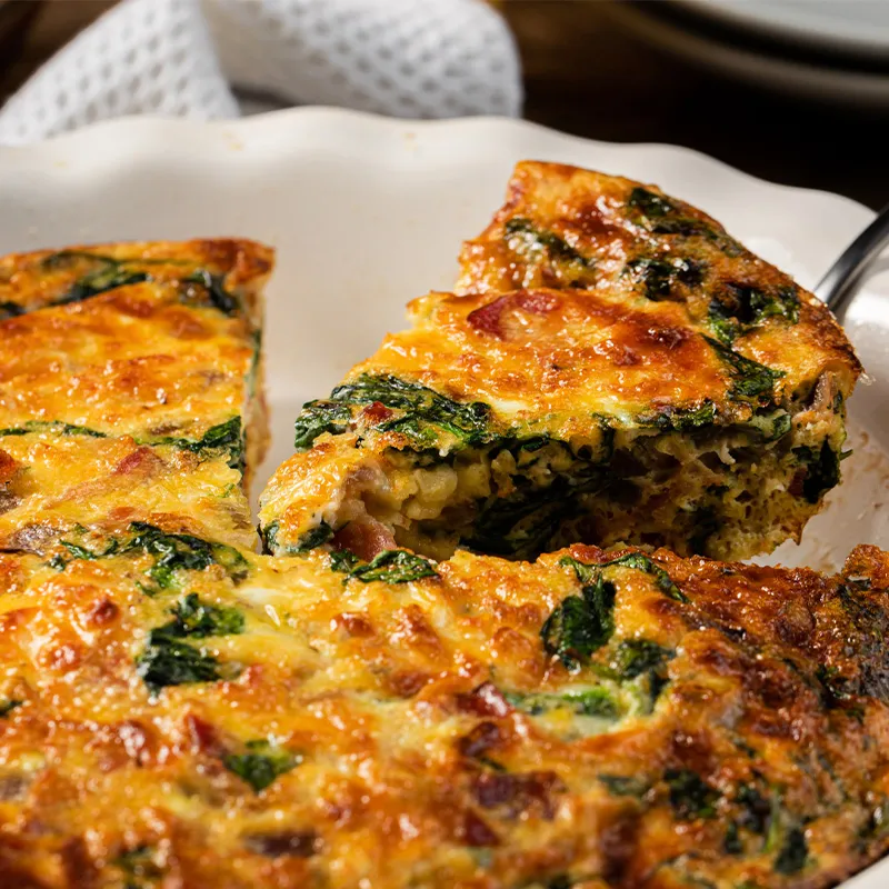 - 3 Ajouter les œufs, les blancs d’œuf, la farine et le jalapeno. Fouetter jusqu’à consistance lisse. Ajouter le bacon, le fromage et les épinards. Verser dans une assiette à tarte ou à quiche vaporisée d’enduit à cuisson antiadhésif.