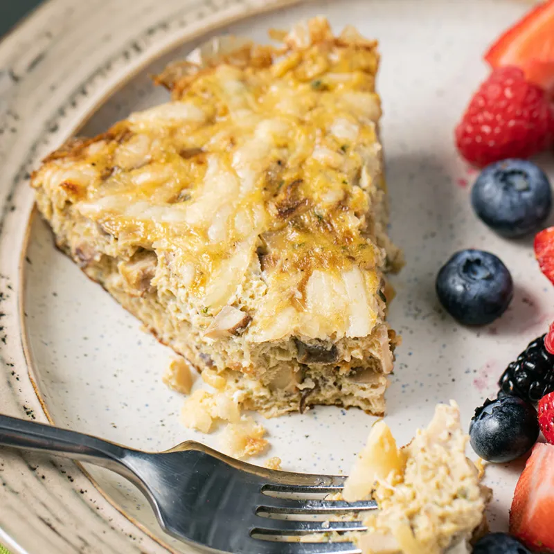 - 2 Dans un grand bol, fouetter ensemble les œufs, les blancs d’œuf, le basilic Gourmet Garden, l’ail Gourmet Garden, le poivre moulu et le lait. Verser sur les champignons et les oignons, en remuant et en agitant la poêle jusqu’à la formation de grosses agglomérations. Lisser le dessus de la frittata avec une spatule plate. Parsemer de fromage parmesan et mettre au four.